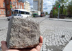 По фотографиям, которые он опубликовал, видно, что булыжники разбросаны по дороге. В основном, камни вылетают возле трамвайных рельсов.